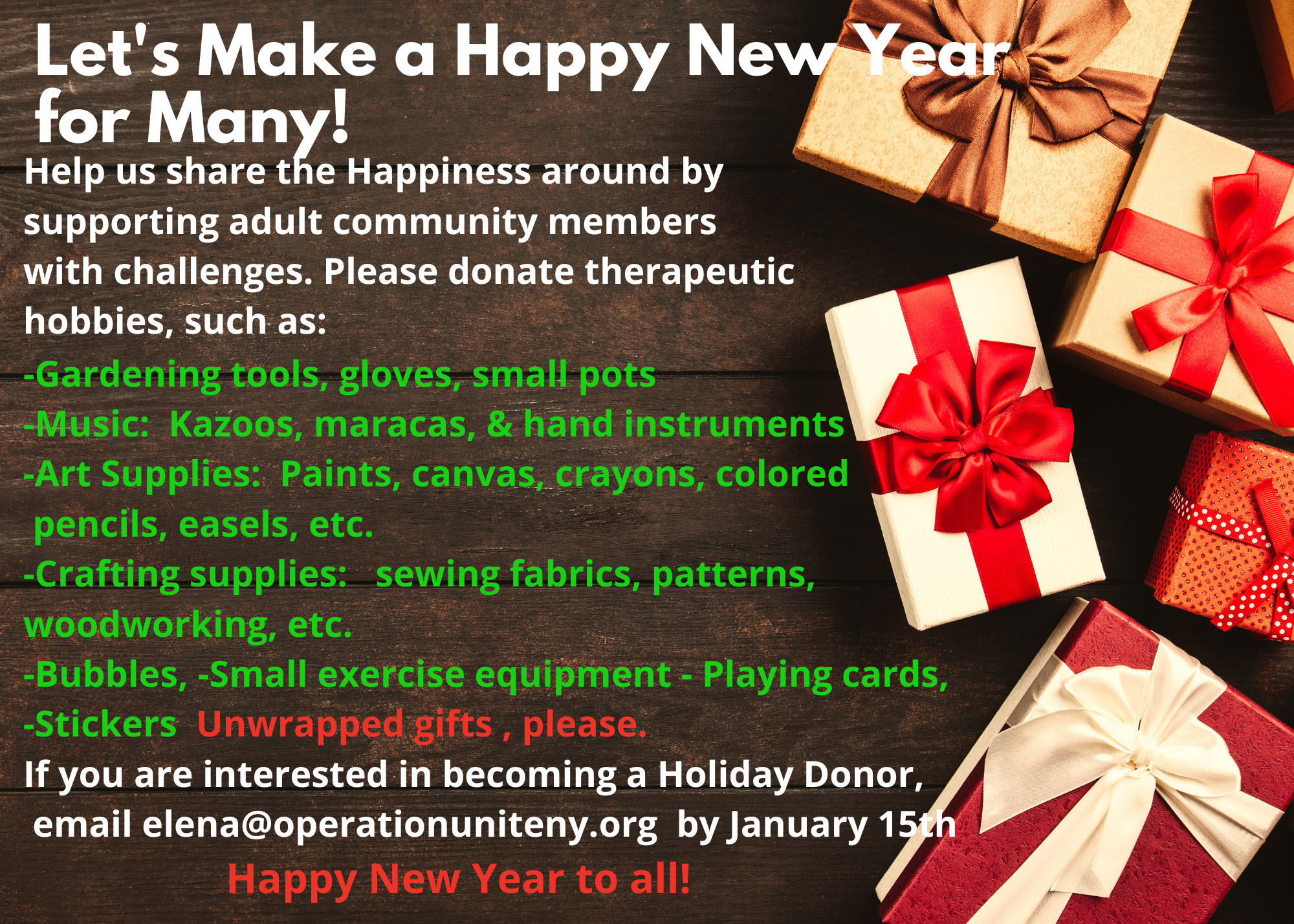 Email elena@operationuniteny.org by January 15th to donate.